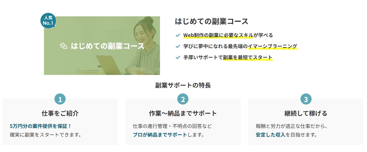 | テックアカデミー | 実践型カリキュラム/副業支援・転職保証あり | 約174,900円〜 | あり(返金保証あり) | ★★★★★ |