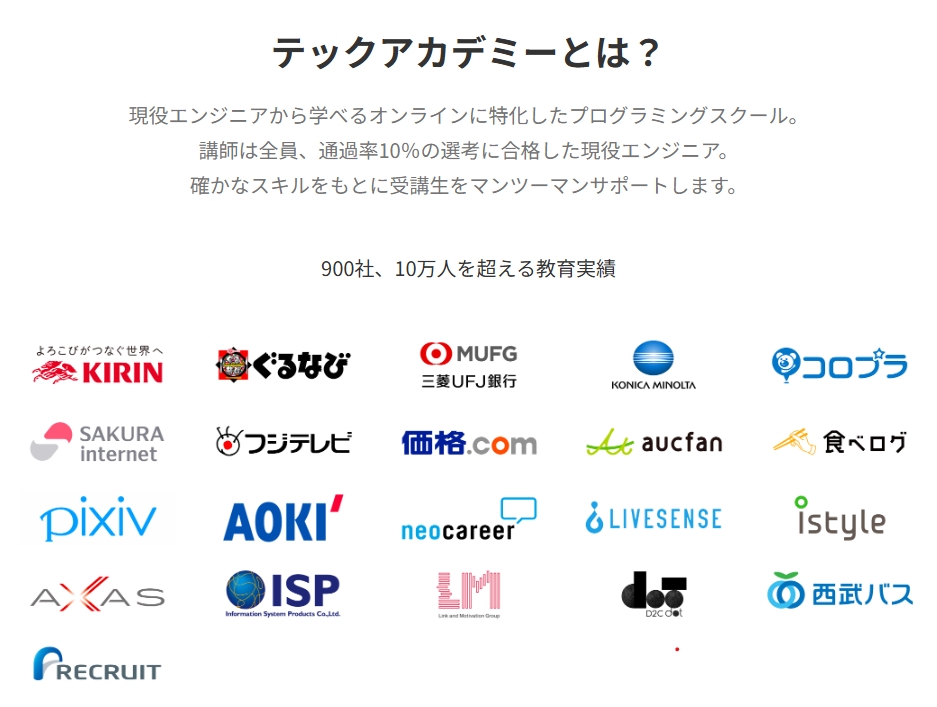 中でも高い評価を受けているのが「テックアカデミー」です。以下のような特徴があり、特に転職希望者や副業を始めたい方におすすめです。